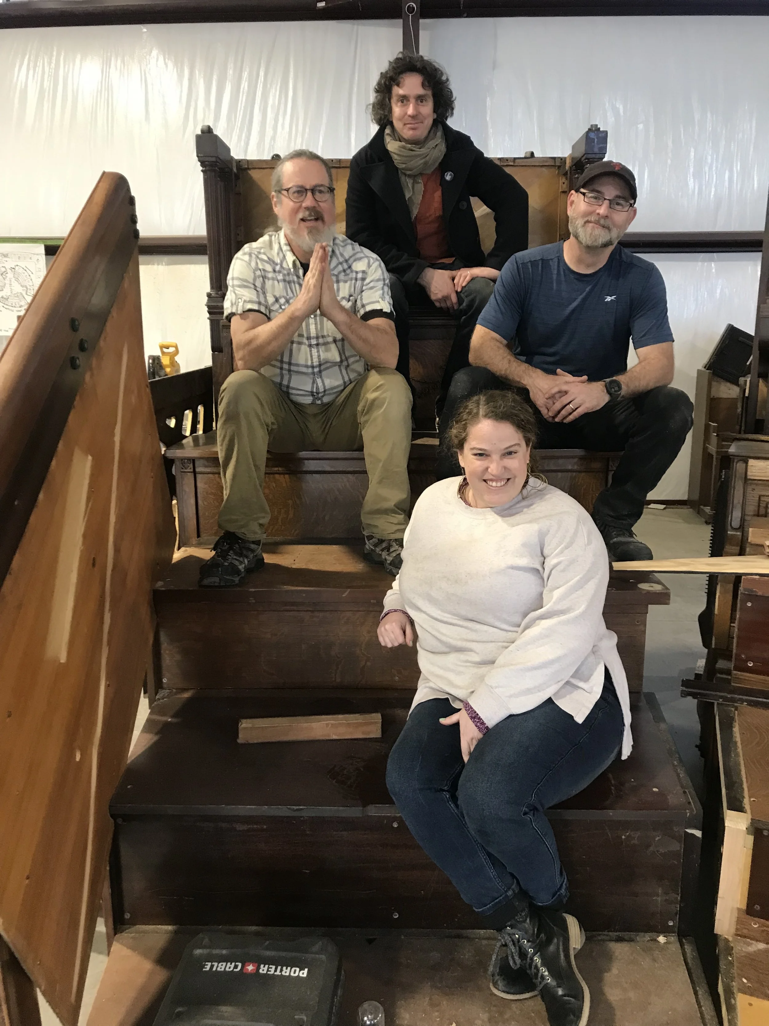 Our producer this side of the pond, Kat, arrives and we meet with Matt and Laura and Tom from the Pianodrome back in Scotland via Zoom. We swap jokes and progress reports. How strangely normal it is to chat despite the 4000 miles between us. Then Pete and Steve arrive with a van full of half dismantled pianos. It’s clear that previous attempts at building Pianodrome Charlotte got much further than I had thought. This is great news as it will save us a lot of work this time round. The rest of the as-yet undismantled pianos, two shipping containers worth, collected and stored over the last 3 years, arrive on Friday. We get to see inside the Grace Church earmarked as our venue come spring on Thursday.