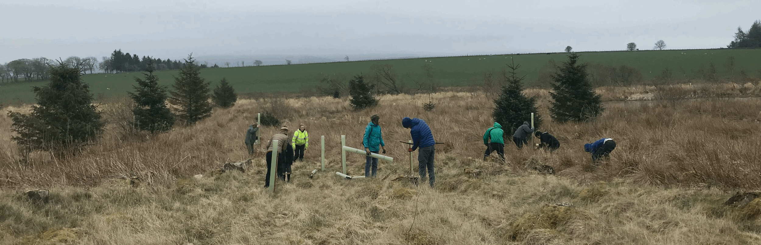 In an attempt to offset our Charlotte flights, last Saturday a group of volunteers from Pianodrome planted 100 new trees at North Cloich hutting site in the Scottish Borders. One flight from Edinburgh to Charlotte produces around 490kg of CO2 so for a return it’s about a tonne.