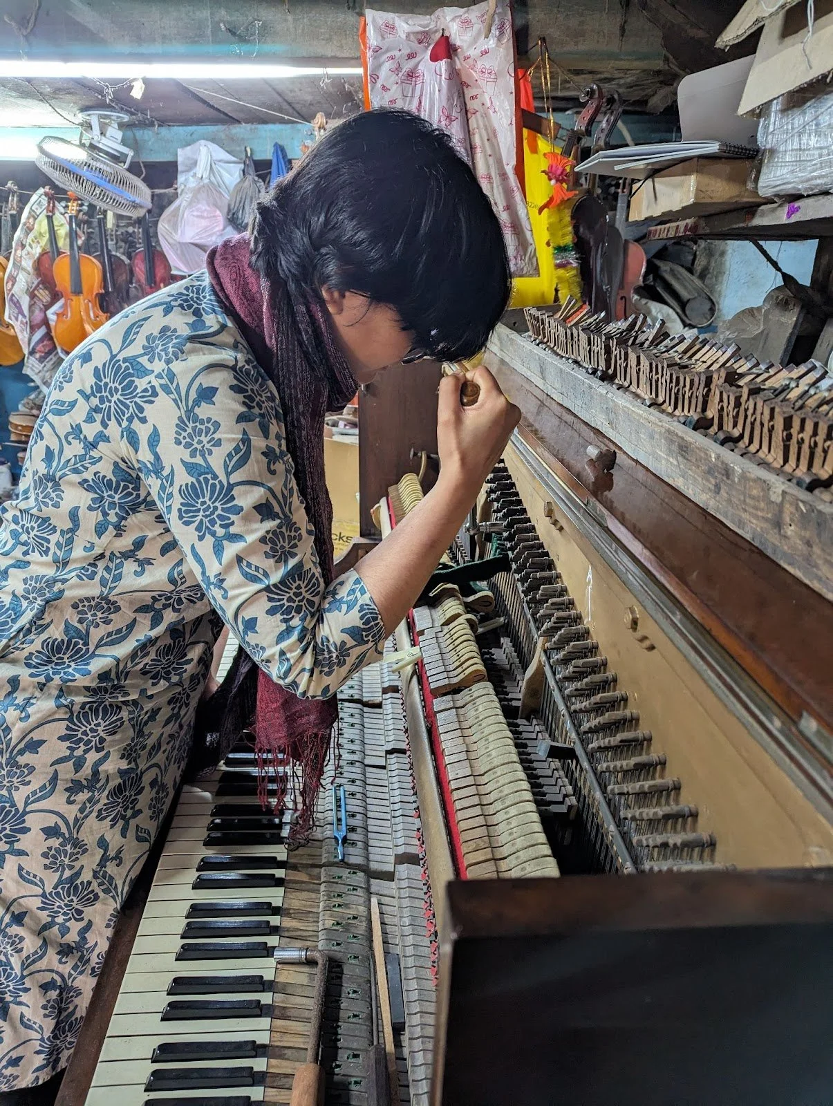 Today 9 volunteers turned up to get stuck in to taking apart pianos - it was an amazing experience to share what we know so well from back home, and to find such enthusiastic and like-minded people so far away.