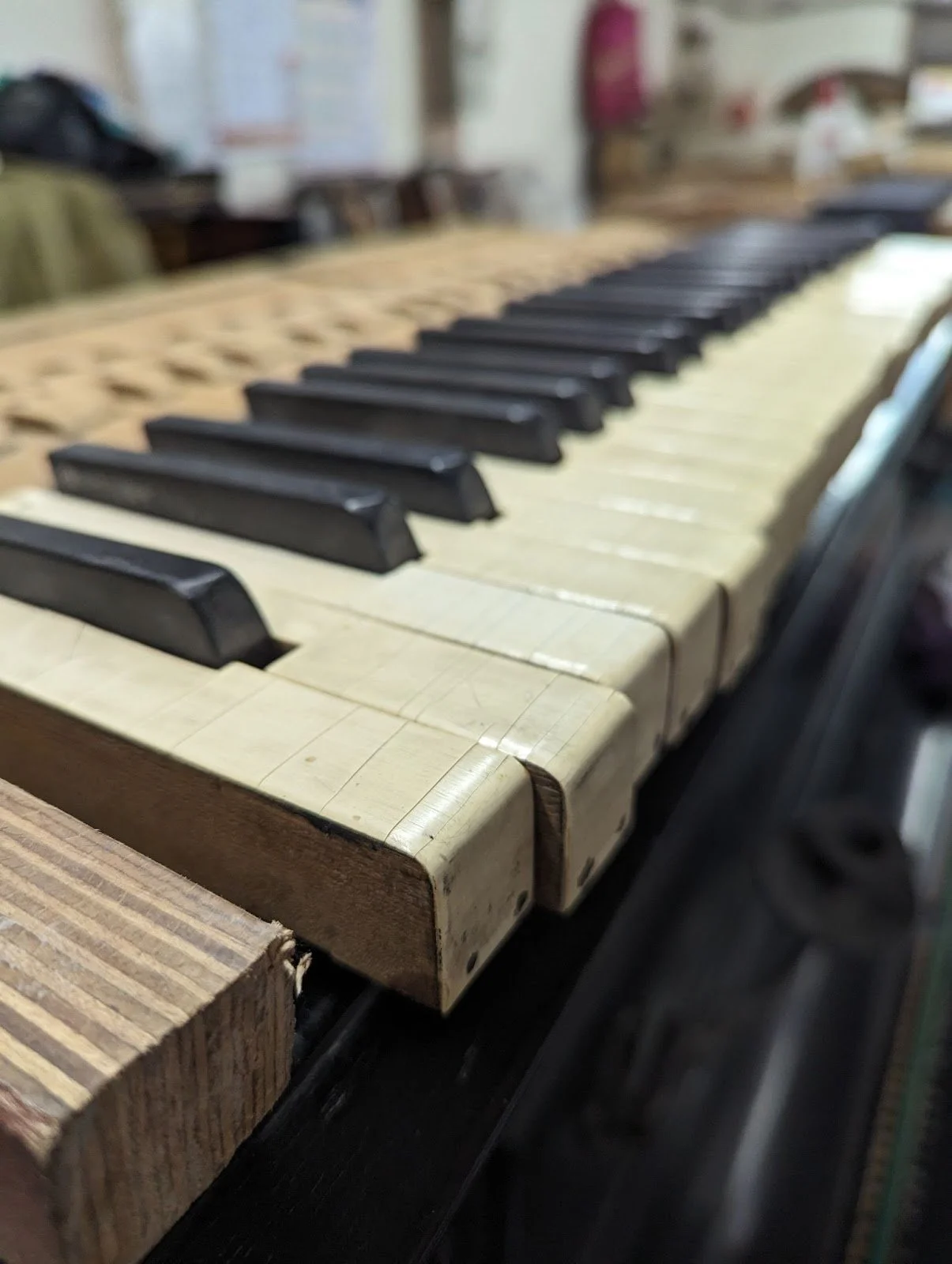 To cut a long story - involving various wrangles with FedEx, customs, transnational piano construction protocols and Brexit - short, Rhonda and Gladys commissioned a maker in the USA to fabricate and ship a narrow keyboard to our workshop in Granton where over the last couple of weeks our top technicians Tom and Joey have inserted it into Melvin’s Brasted from Leeds. It has been regulated and tuned and now awaits installation as one of the three embedded playable pianos in the Old Royal Pianodrome.