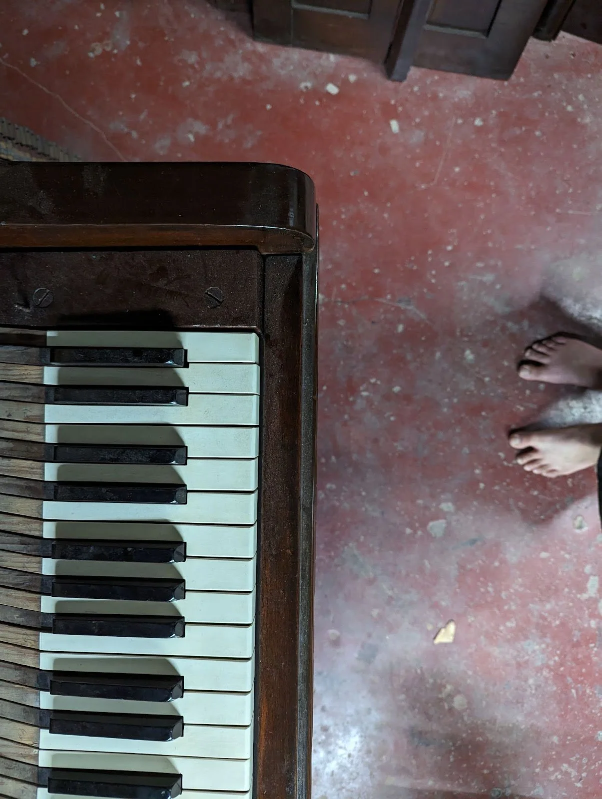 When the time comes to return to Edinburgh Melvin opens his container of ‘maybe playable pianos’ and we are allowed to try them all and select a couple to bring back home for adoption. This is how we came across the Brasted. A gift. A lovely old upright - not good enough for Melvin to sell but a great potential fixer upper for us.