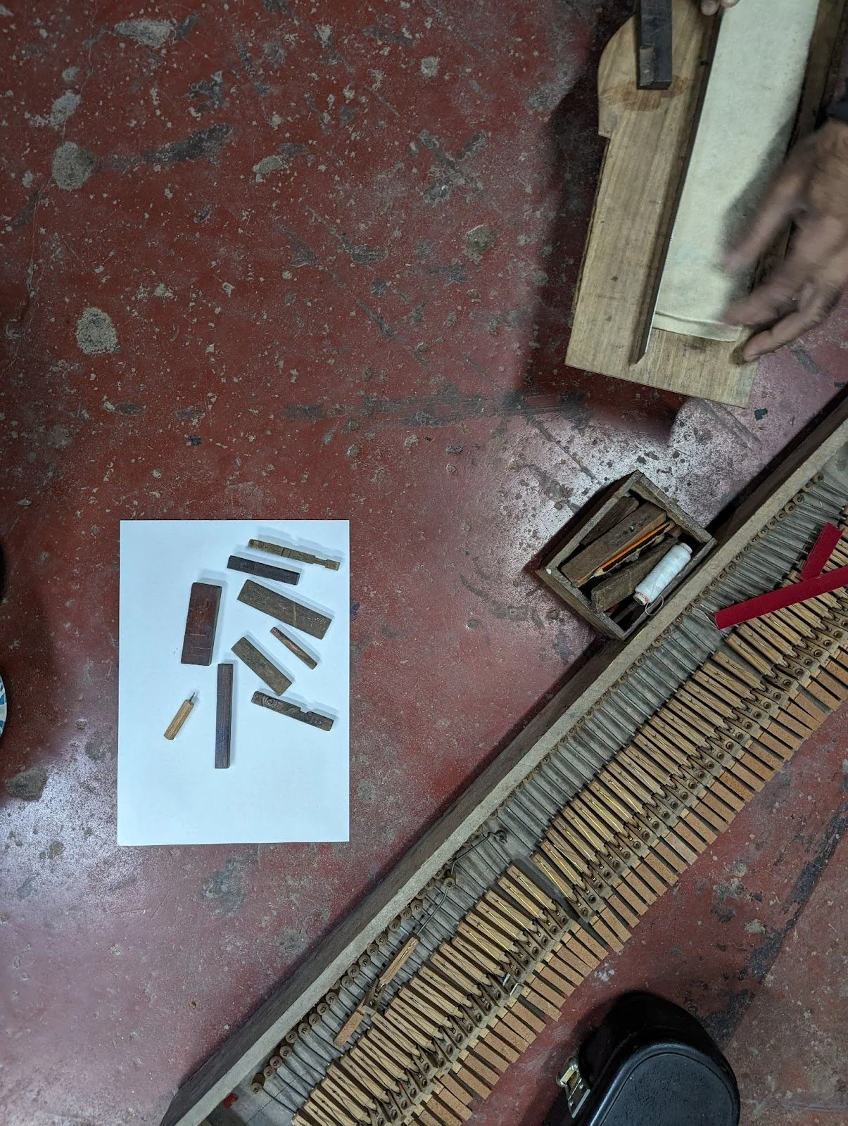 Today Kat joined the dismantling crew in the afternoon and it feels just like countless piano dismantling sessions previously with tunes on the stereo, folk swapping stories and helping each other out with tricky corners and heavy lifts, exciting discoveries of small treasures and wonder at these extraordinary constructions; historic objects at the intersection of engineering, craftsmanship and music.