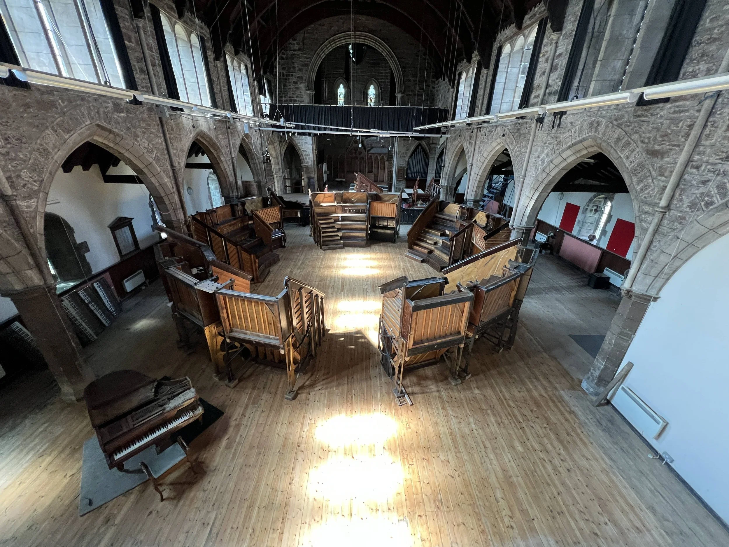 In close collaboration with The St Oswald’s Centre charity who bought this beautiful but neglected building from the council in 2020, Pianodrome are helping to bring the old church nave back to life and open the doors of this extraordinary space as a thriving community centre. Like an old piano that needs a good tune and a fix to play beautiful music again this old church hall needs a whirlwind of creative energy to once again pulse with creativity.